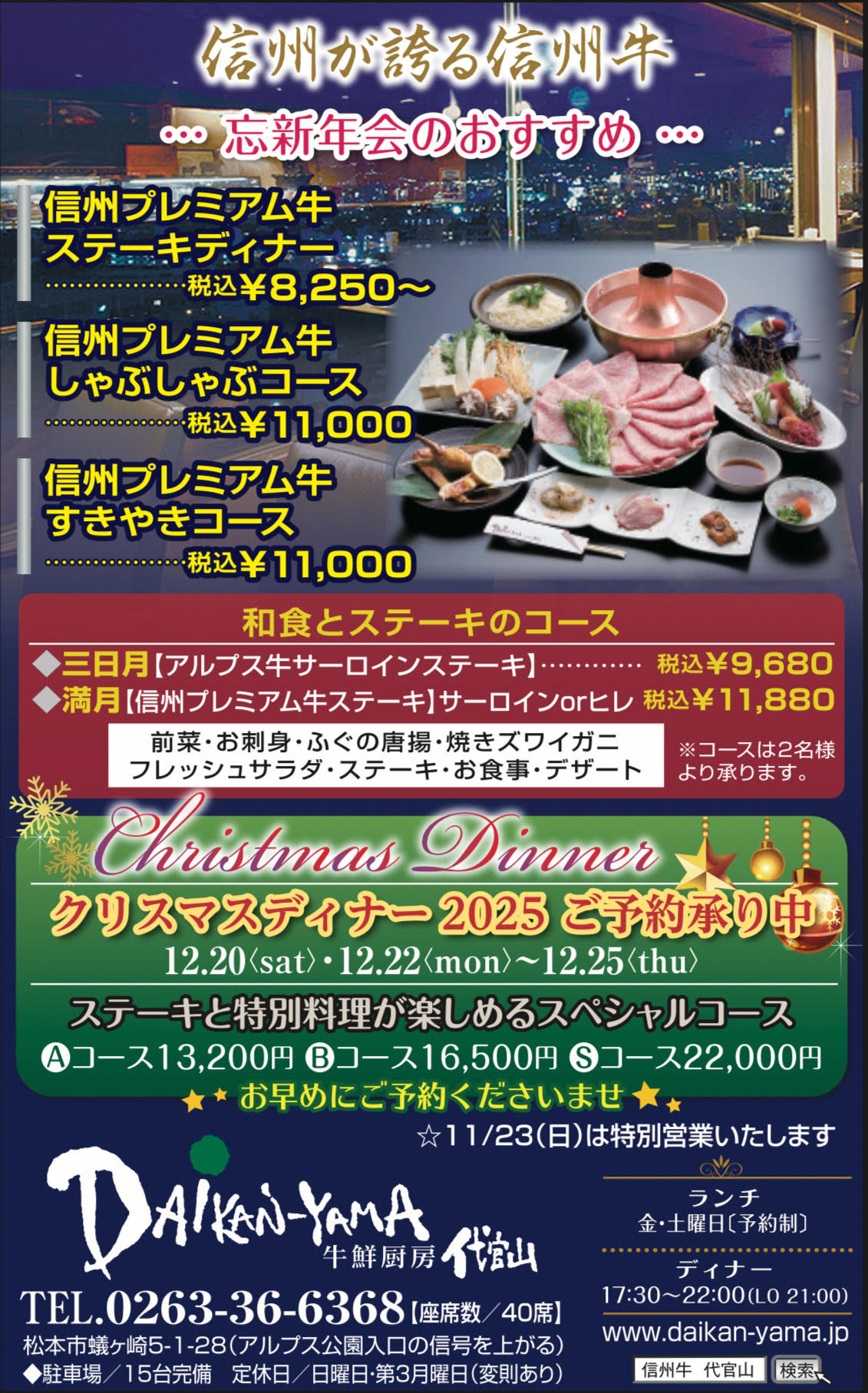 ※24日(水)はクリスマスディナーのみの営業です(通常メニューはありません)